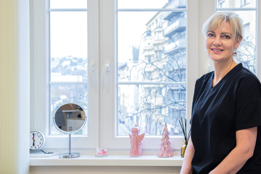A magánéletem miatt alakult úgy, hogy az orvos-esztétika irányába indultam el. Férjem transzplantációs sebész, így nagyon sokat dolgozik, gyermekeink születését követően olyan területet kerestem, amely a családi élettel jobban összeegyeztethető a praktizálásnál. Orvosi termékek forgalmazásával kezdtem foglalkozni, így találkoztam a szépségipar komoly szakmai háttért igénylő területével. Nagyon sok időt és energiát követelt tőlem, míg ezen a téren is tökéletes tudást szereztem, s ma már örömmel tartok magam is képzéseket, bemutatókat, oktatásokat.